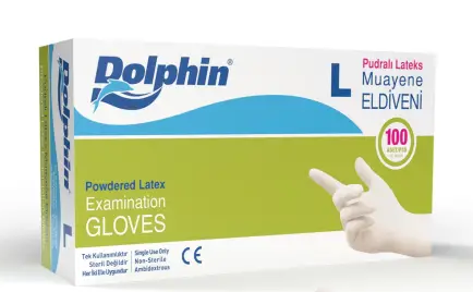 Dolphin Pudralı Lateks Muayene Eldiveni, sağlık sektörünün ve çeşitli endüstrilerinin gereksinimlerini karşılamak için tasarlanmış yüksek kaliteli bir üründür. L beden seçeneği ile geniş bir kullanıcı kitlesine hitap ederek rahatlık ve koruma sunar.